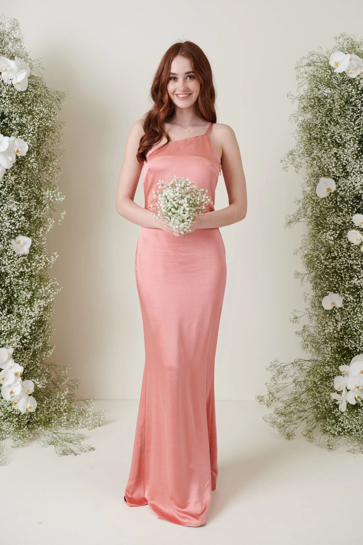 Pair with our other satin apricot pink dresses for a modern mix and match bridesmaid look.