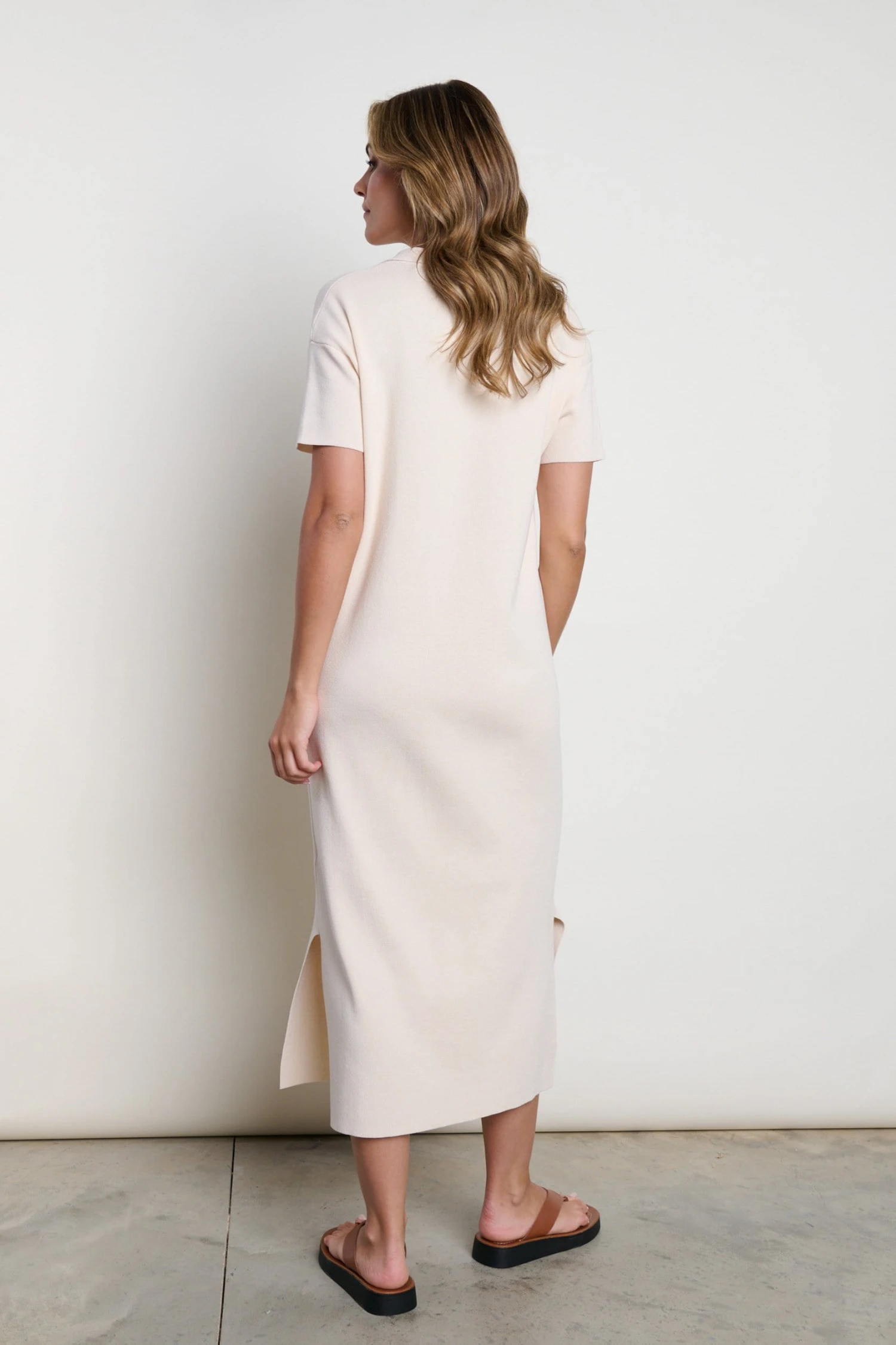 Introducing the Elodie Collared Knit Dress made of a luxury Milano stitch. The oversized smock silhouette gives for a comfortable, relaxed wear. Pair with white trainers and a cross body bag for a casual look or accessorise with gold jewellery, mules and a clutch for an evening vibe.