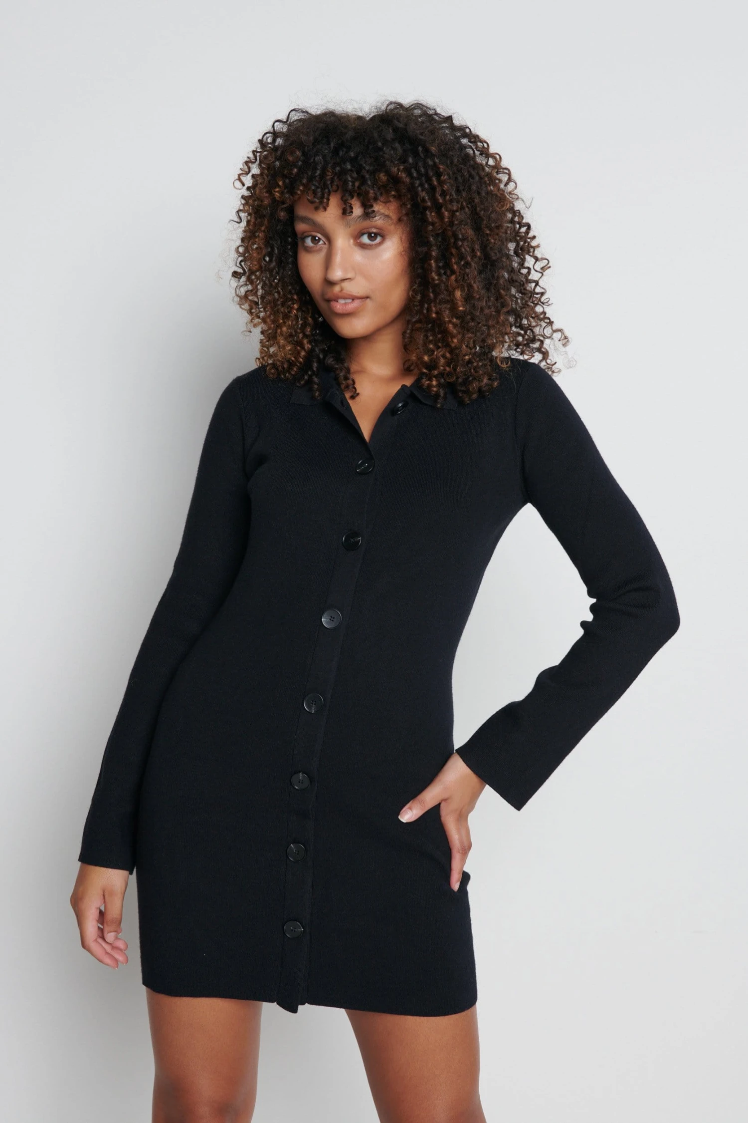 Your dream knit mini is here in Chapter 4…Â The Elsa mini dress is the perfect combination of elegance and chic. The soft knit will compliment your figure beautifully and the full button detail give the outfit that hint of playful glamour that every women desires. Style yours with knee high boots for the complete look.