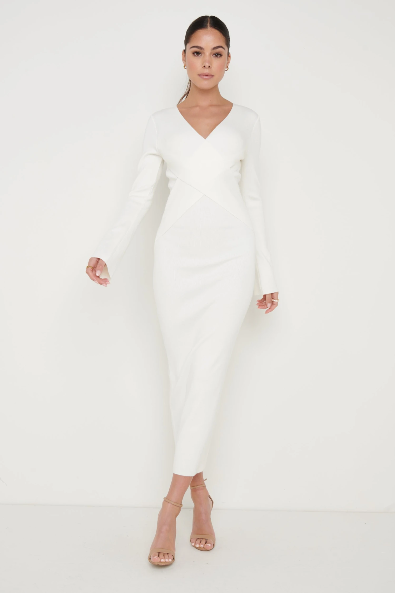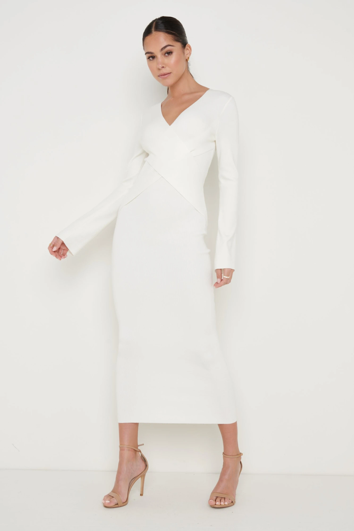 Designed with a flattering wrap detail, this Midaxi dress has a slim bodycon silhouette. Compliment its hue with neutral heels.