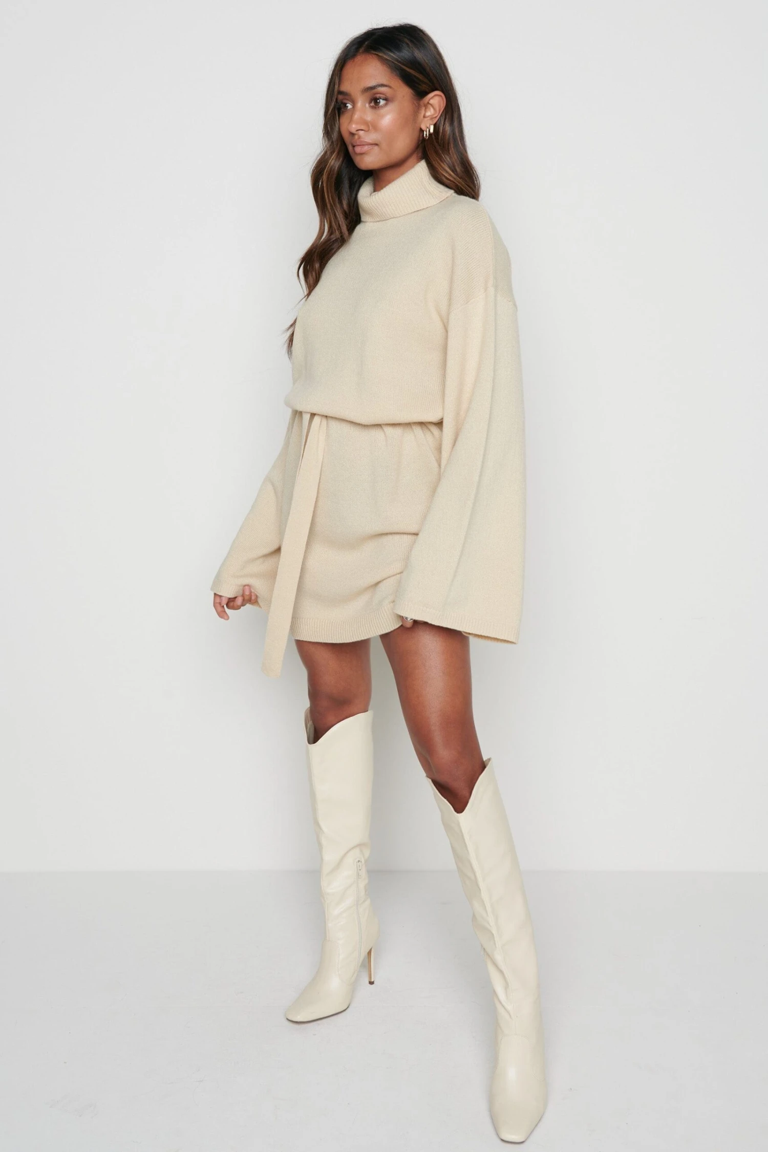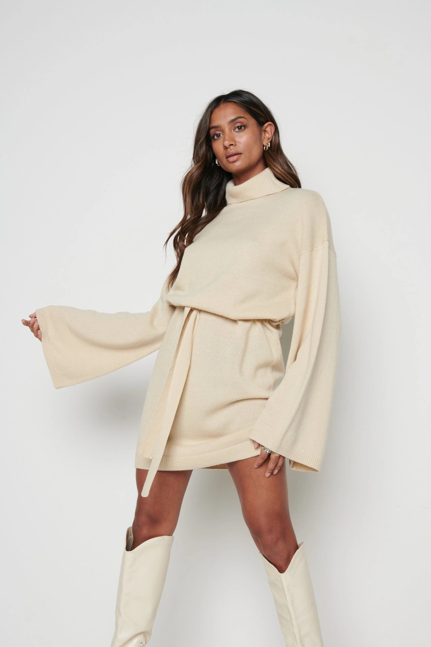 The Jayda knit dress is the ideal transitioning piece to see you through to SS22! This soft knit dress features a roll neck with detachable belt. Pair with knee high boots and simple jewellery.