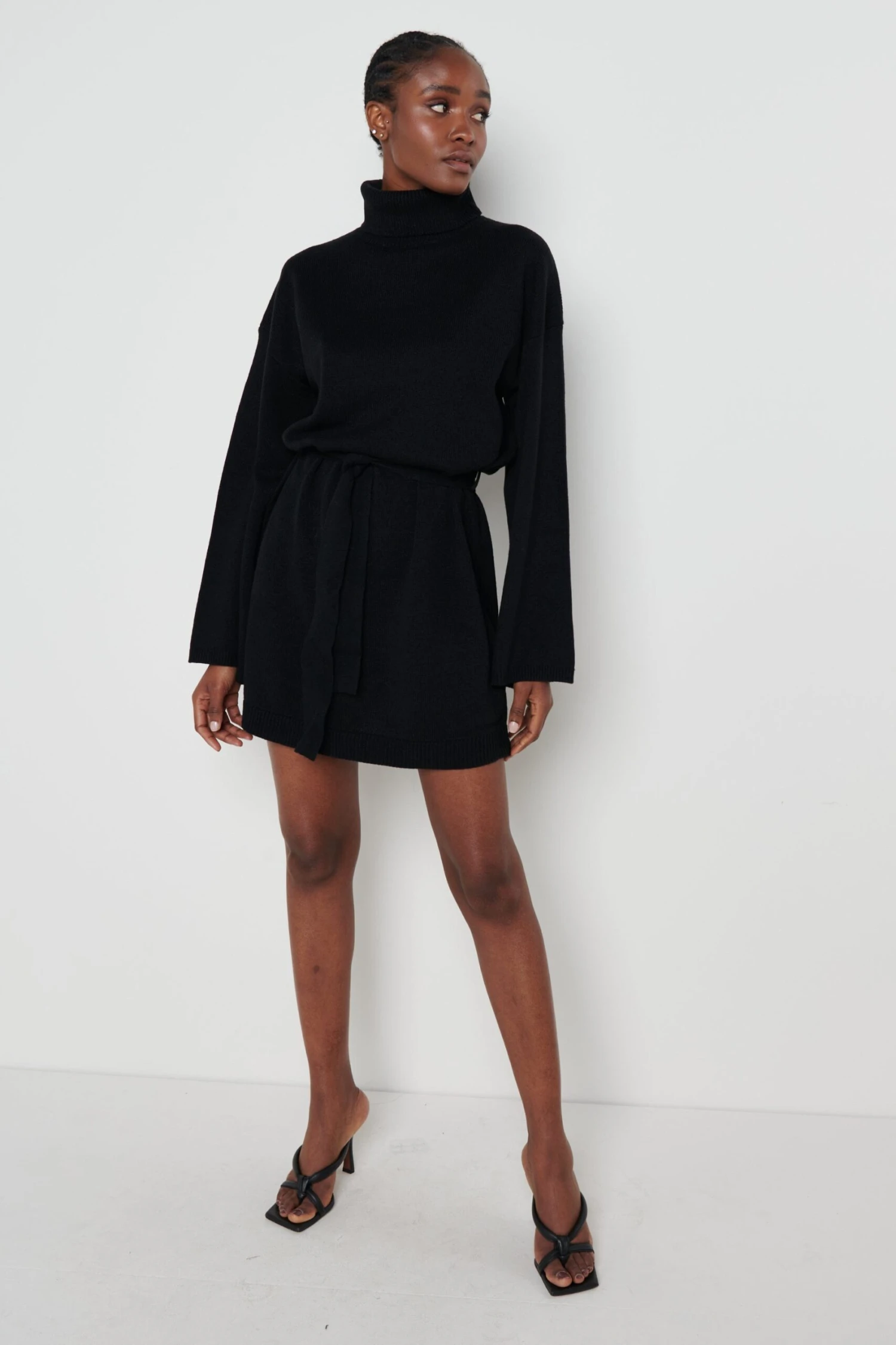 The Jayda knit dress is the ideal transitioning piece to see you through to SS22! This soft knit dress features a roll neck with detachable belt. Pair with knee high boots and simple jewellery.