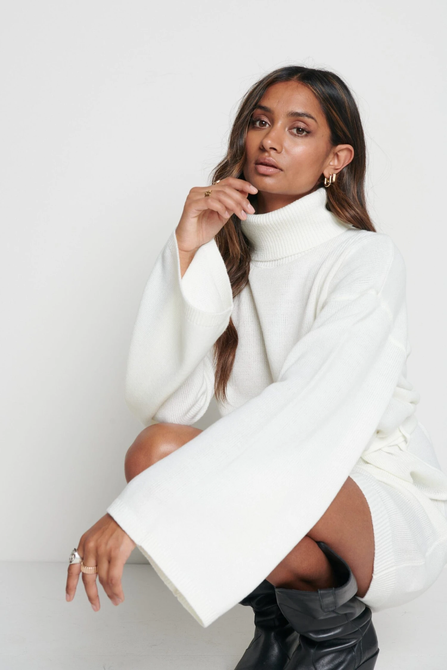 The Jayda knit dress is the ideal transitioning piece to see you through to SS22! This soft knit dress features a roll neck with detachable belt. Pair with knee high boots and simple jewellery.