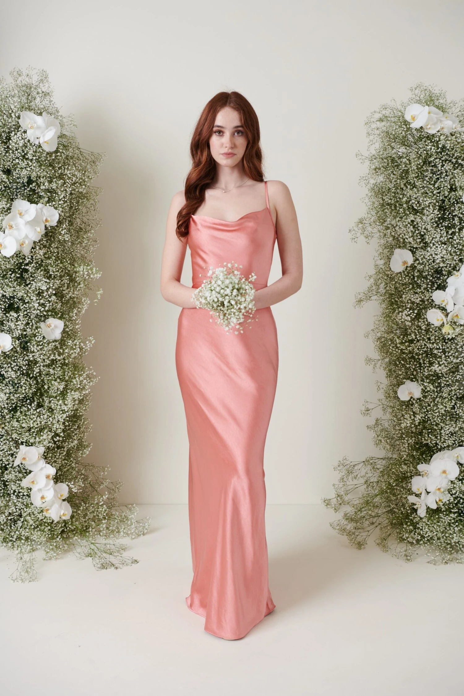 Pair with our other apricot pink satinΒ dresses for a modern mix and match bridesmaid look.