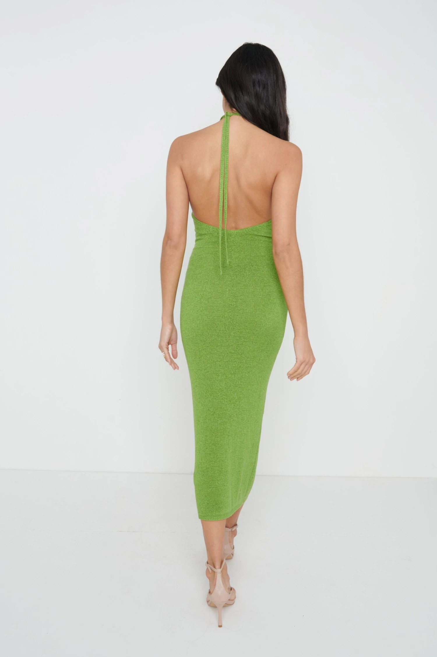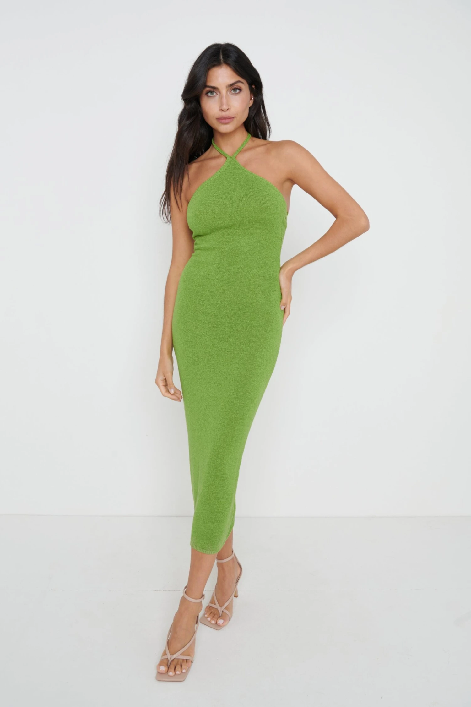 Kendyll Halter Tie Knit Dress – Citrus Green