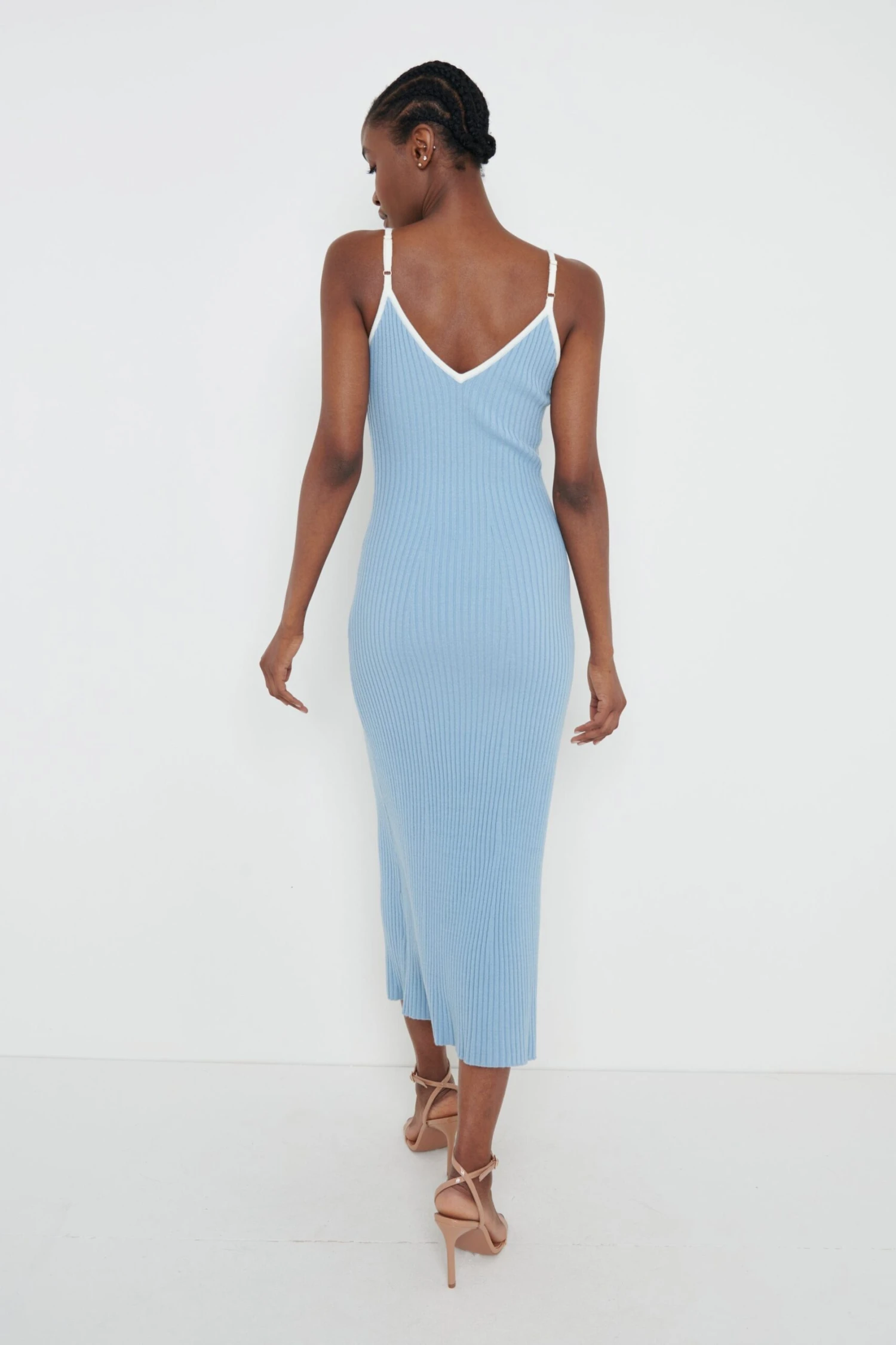 Lorin Contrast Strap Knit Dress – Blue