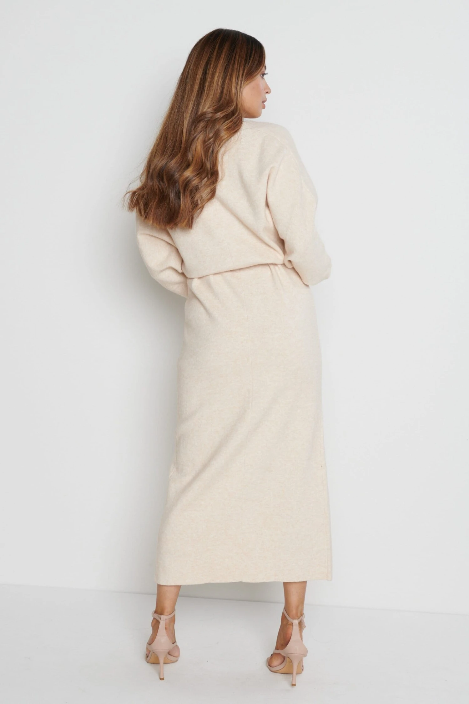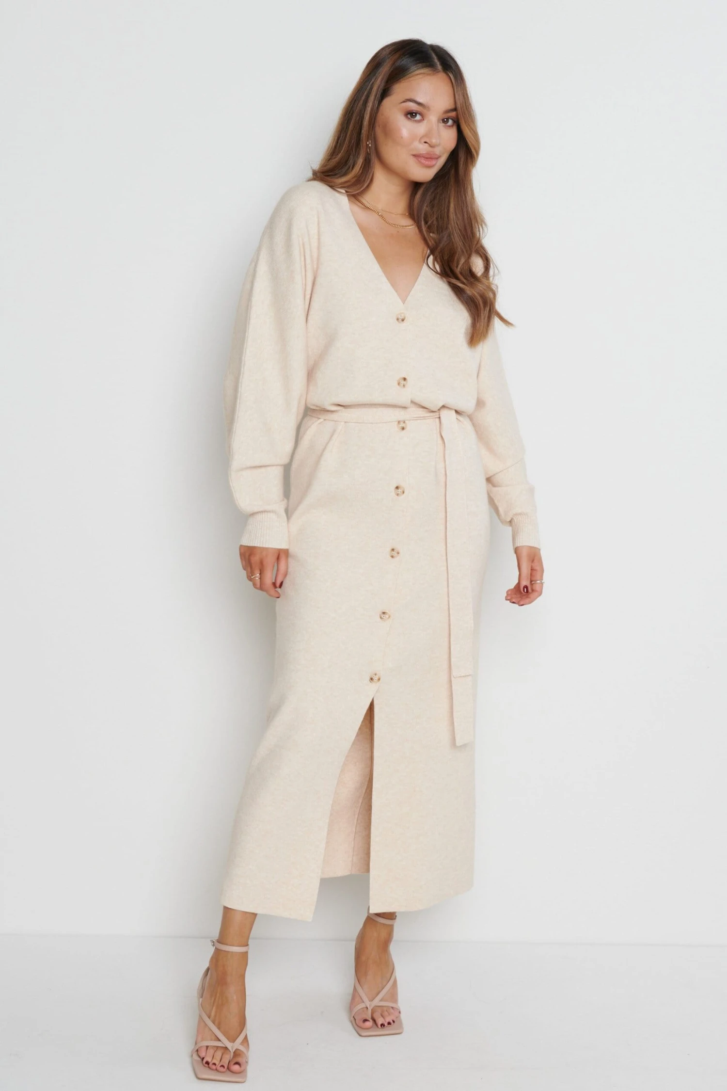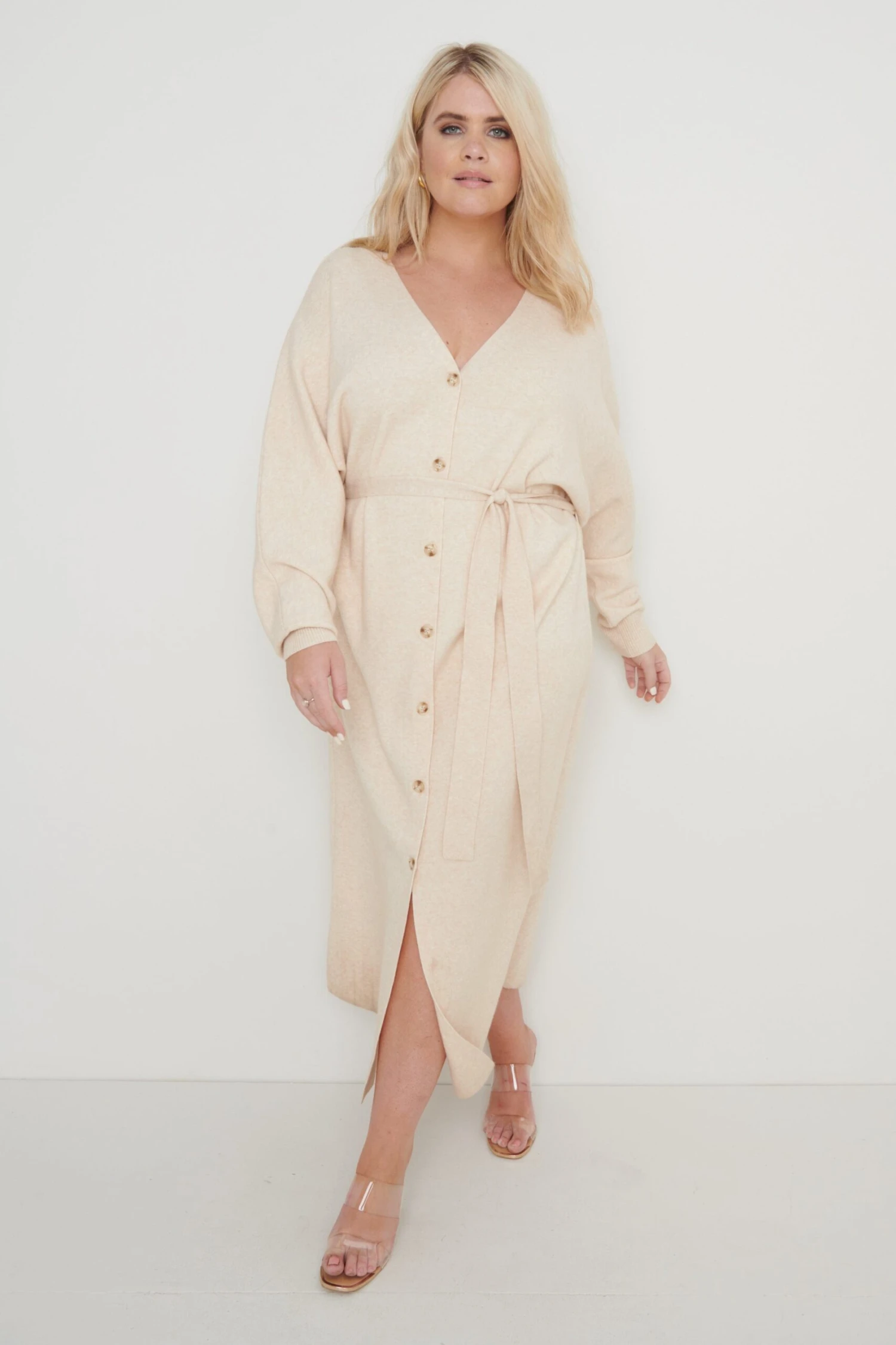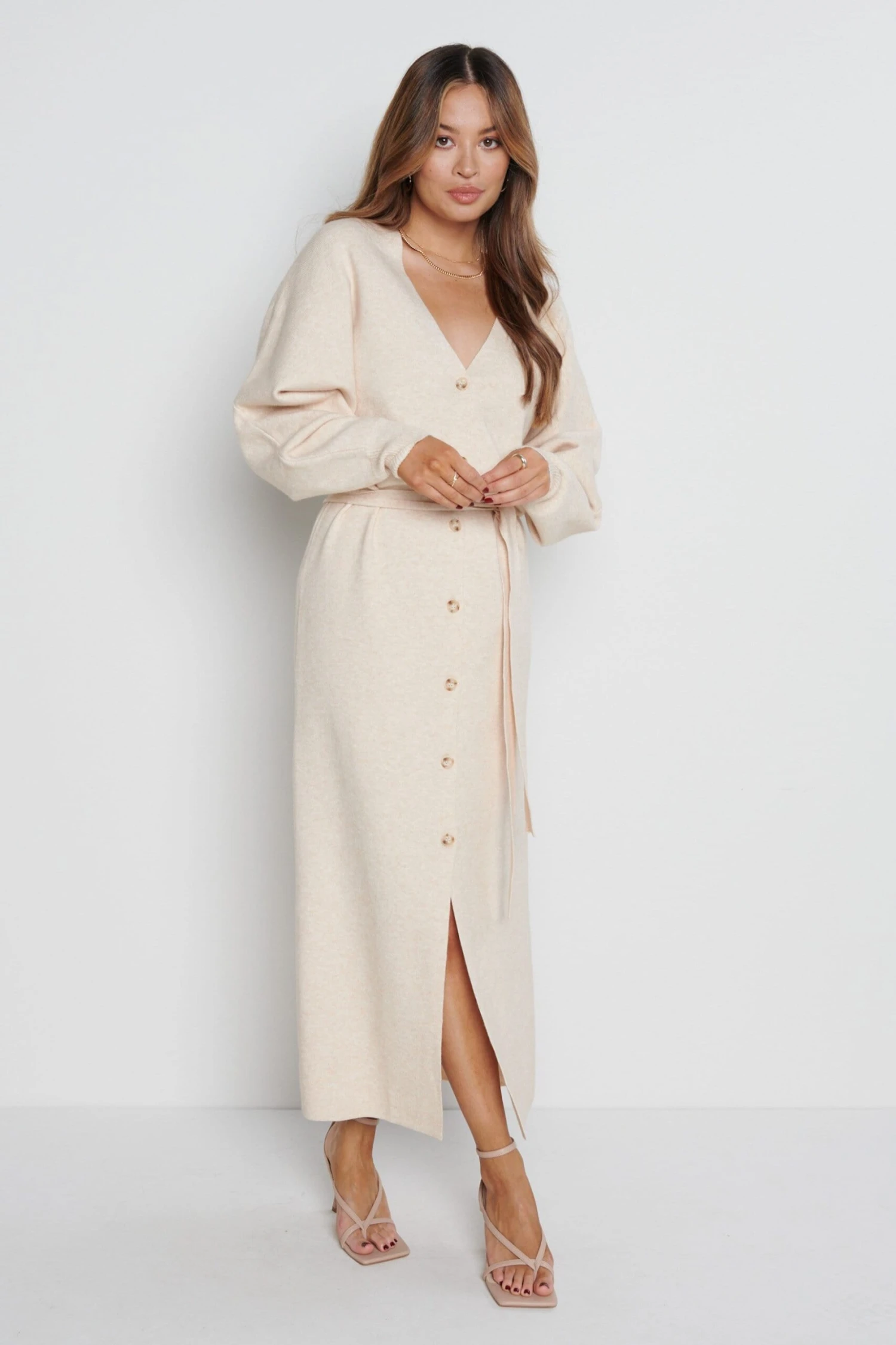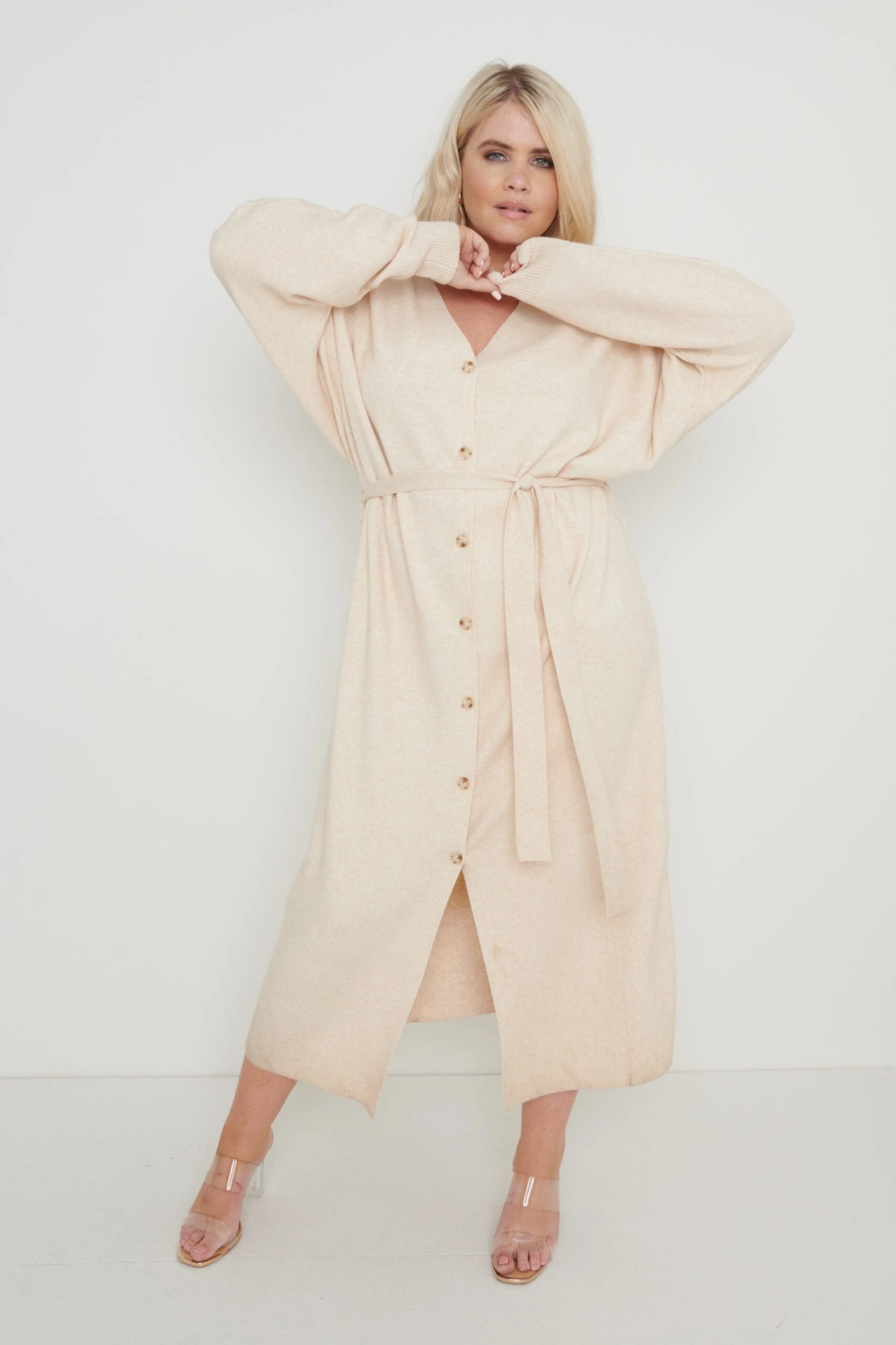 Peony Belted Cardigan Dress – Beige