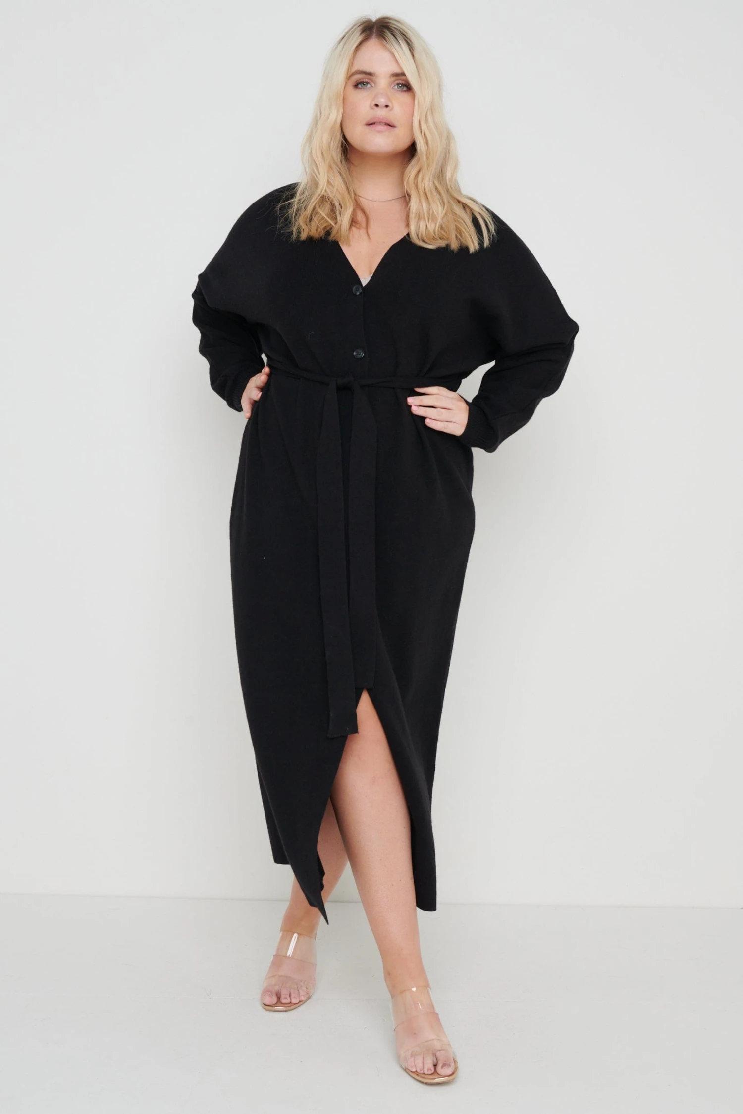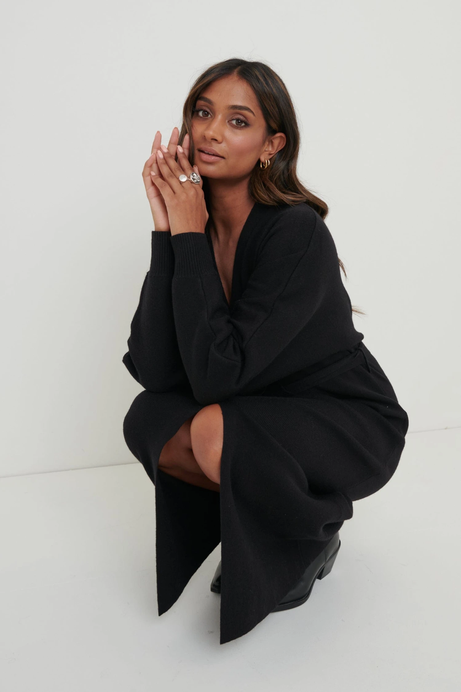 Featured from our Maximal Minimalism September October collection. The Peony Dress has a cardigan-like silhouette made from a soft jersey knit. Timelessness fashion is at the heart of this design. Fasten with its detachable tie belt for a cinched in look or let loose for a relaxed fit. Accessorise its simplicity with delicate gold jewellery for an on-trend look.