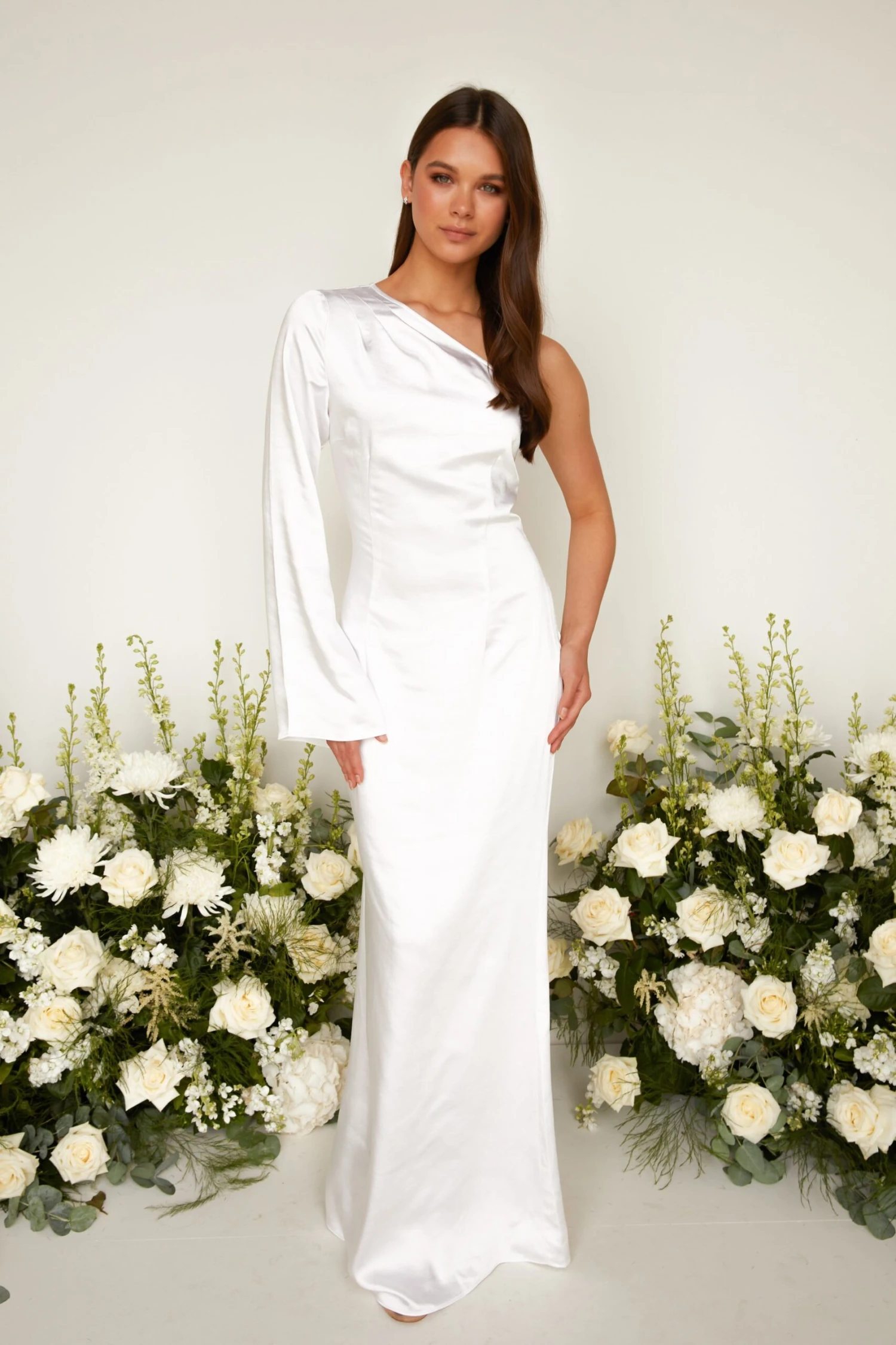 Made out of a luxurious satin with a silk feel and lavish sheen, the Rosie maxi dress has been pantone dyed to our stunning, exclusive SS21 pantones. Your bridesmaids will feel elegant and classy with the one shoulder feature that cascades into a wide kimono sleeve. Guaranteed to compliment all figures as the silhouette effortlessly drapes to the floor.