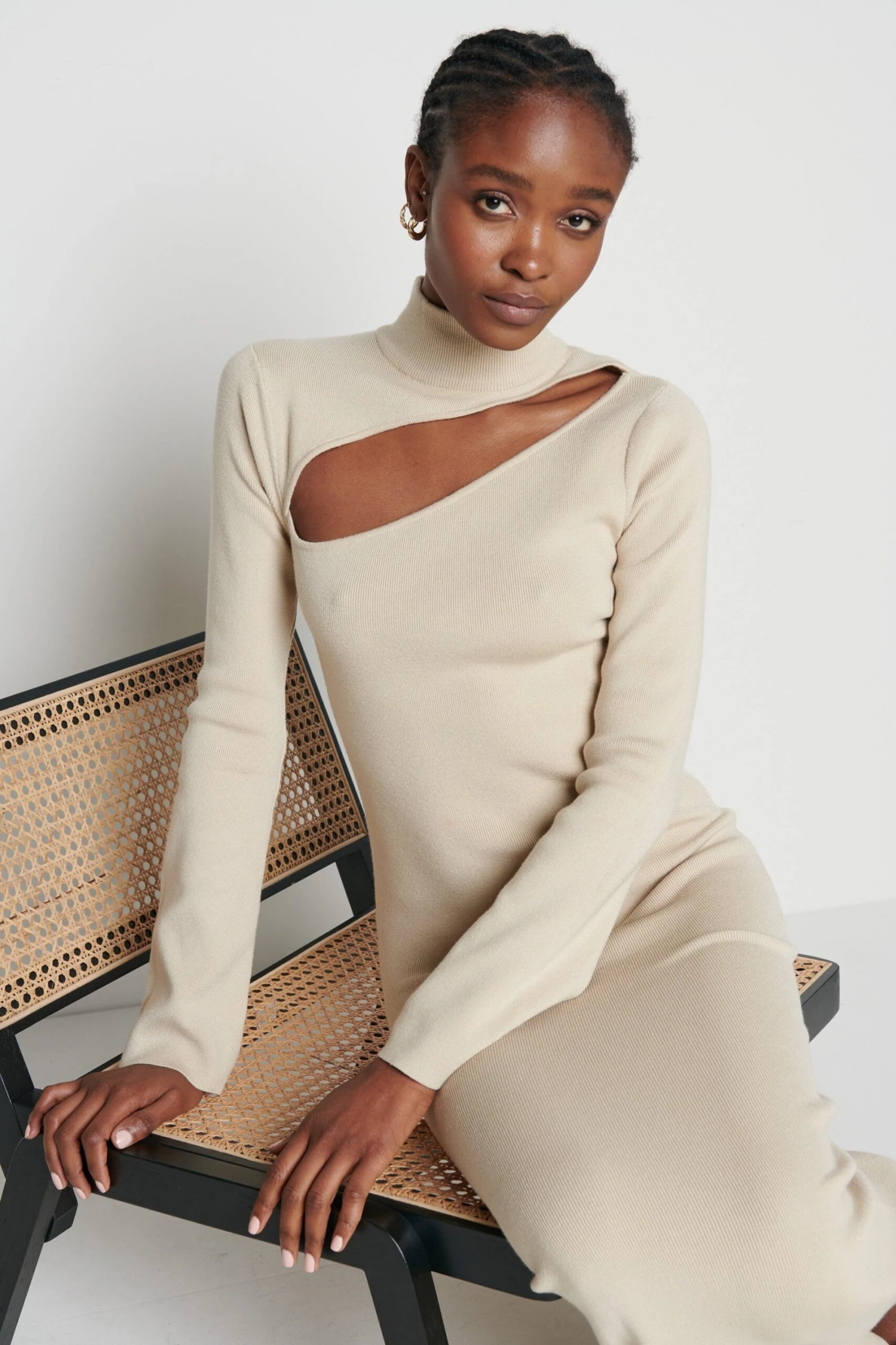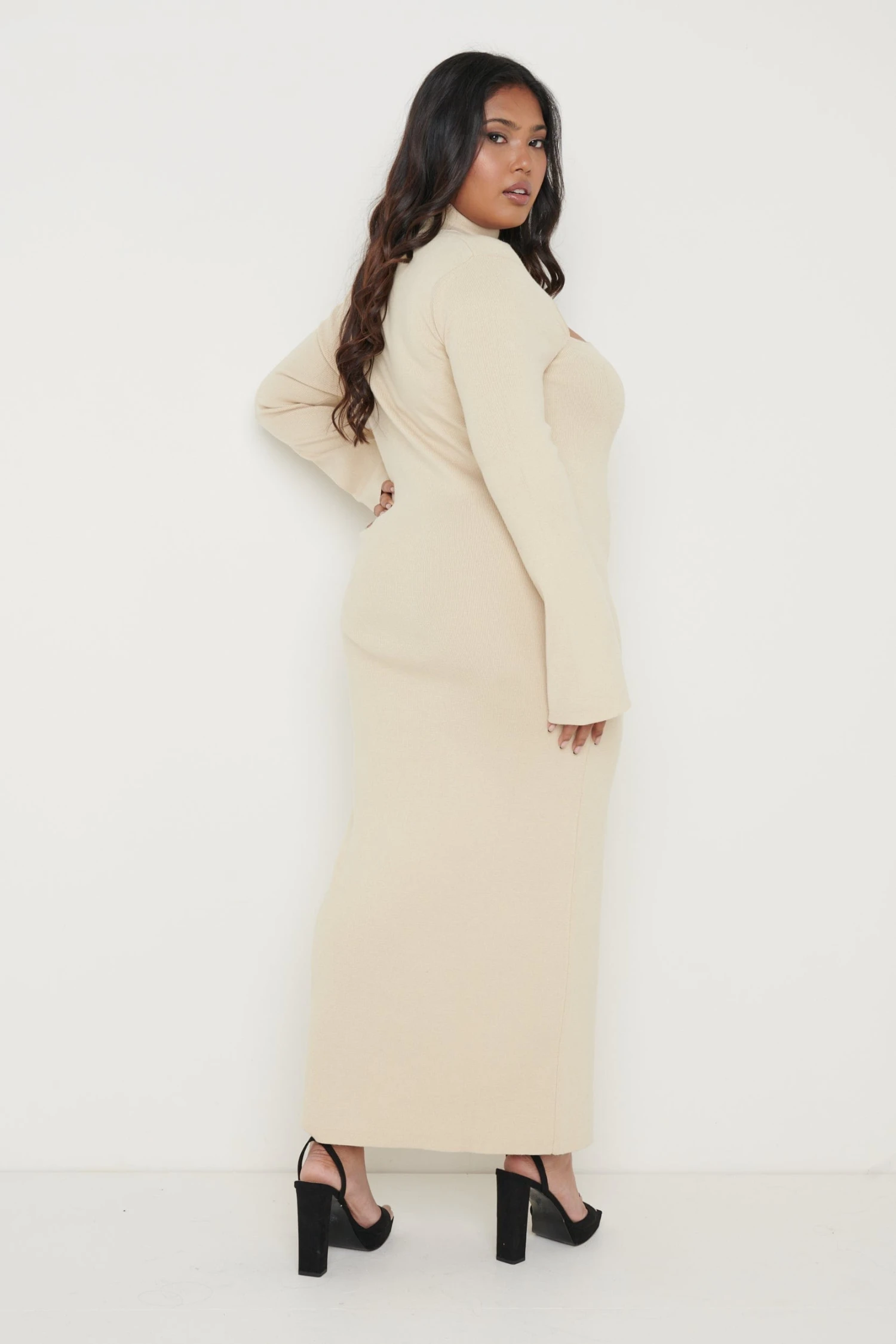 The Shani Cut out knit dress is the best option for when you want to look glamorous of an evening, but dressed more appropriately for the weather! Detailed with a gorgeous on trend cut out front, with a delicate grown on neck, in the softest ribbed knit. Pair yours with barely there’s and a clutch for perfect winter nights out!