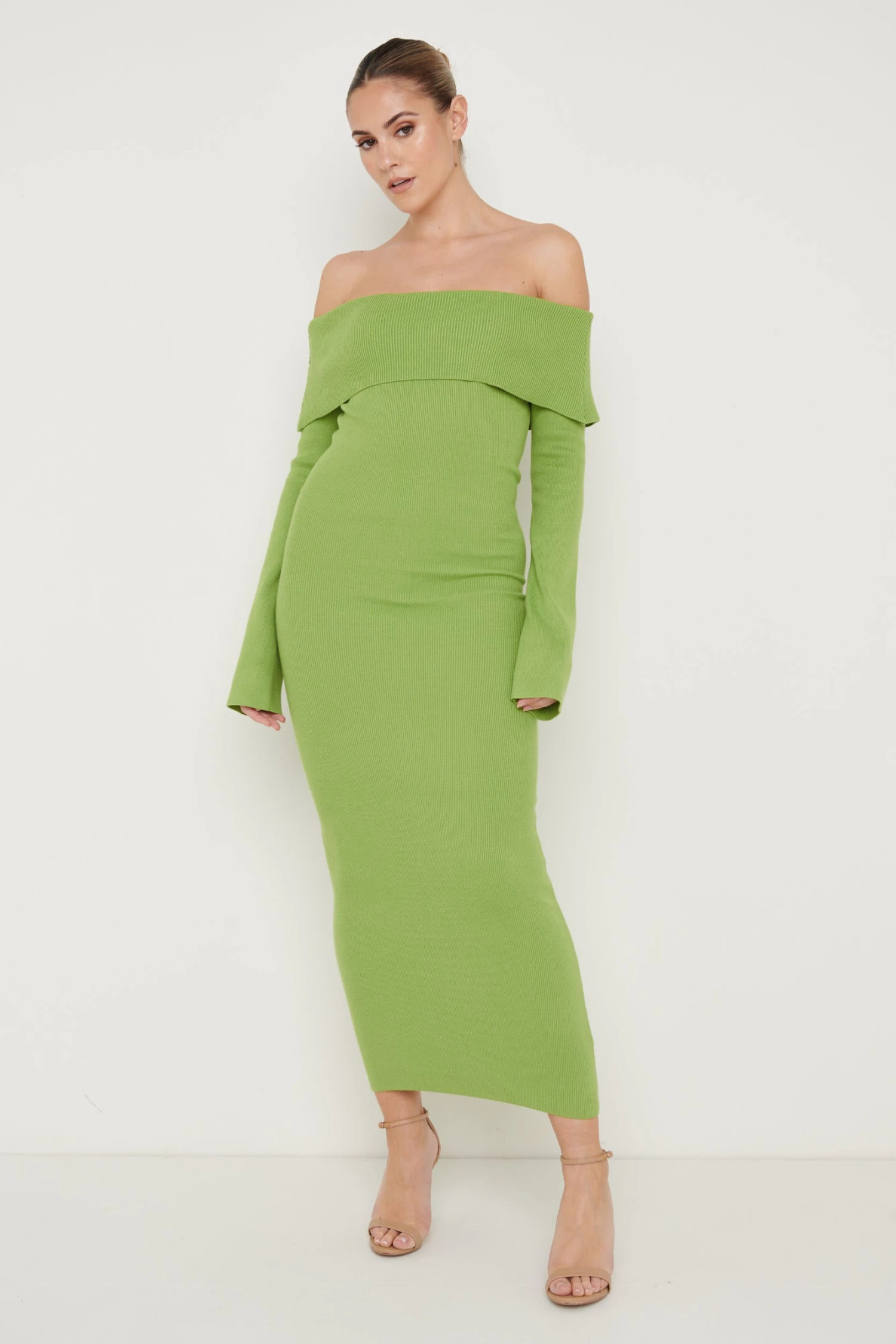 Designed as our best selling ‘Soreya’ this Midaxi dress has a slim bodycon silhouette with a gorgeous Bardot detail. Compliment its hue with neutral heels.