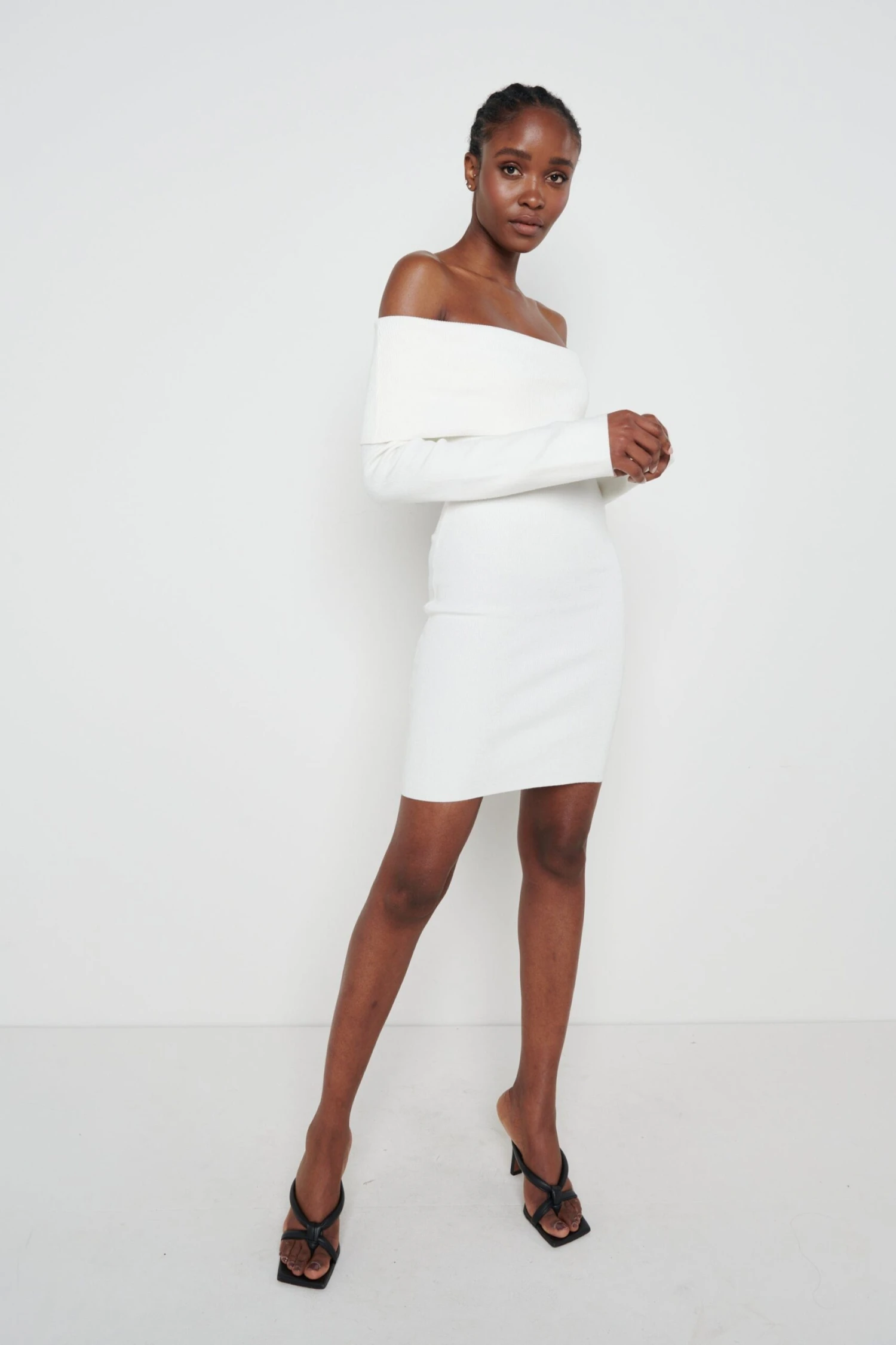 The Soreya mini dress showcases an off the shoulder neckline, which provides both elegance and class. This timeless dress is made of a soft knit, which creates a figure-hugging silhouette that will really bring out your confidence. Style yours with trainers for a casual effortless look or heels and a clutch for a more put together evening vibe!