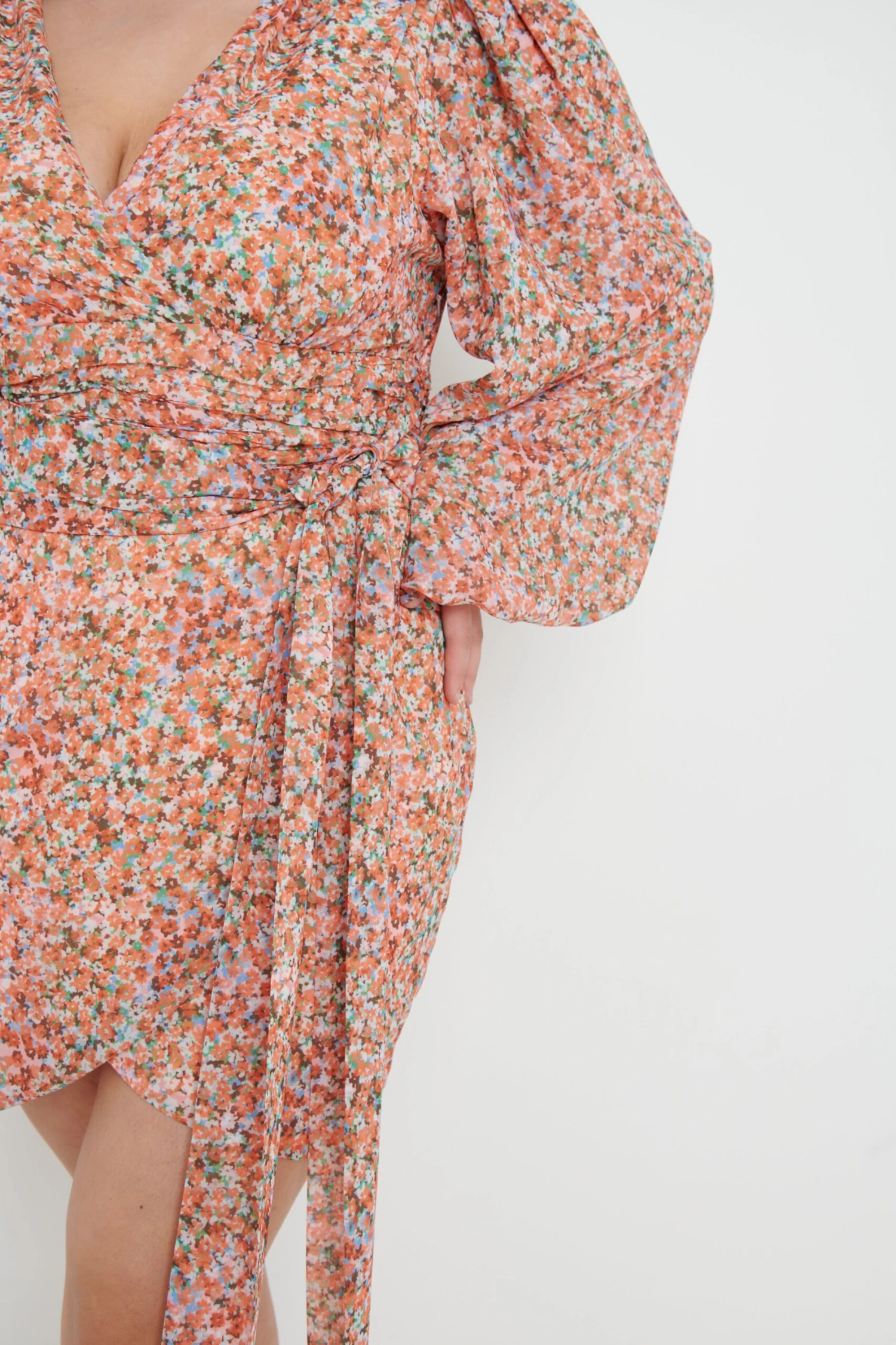 Tori Mini Drape Dress – Orange Ditsy Floral